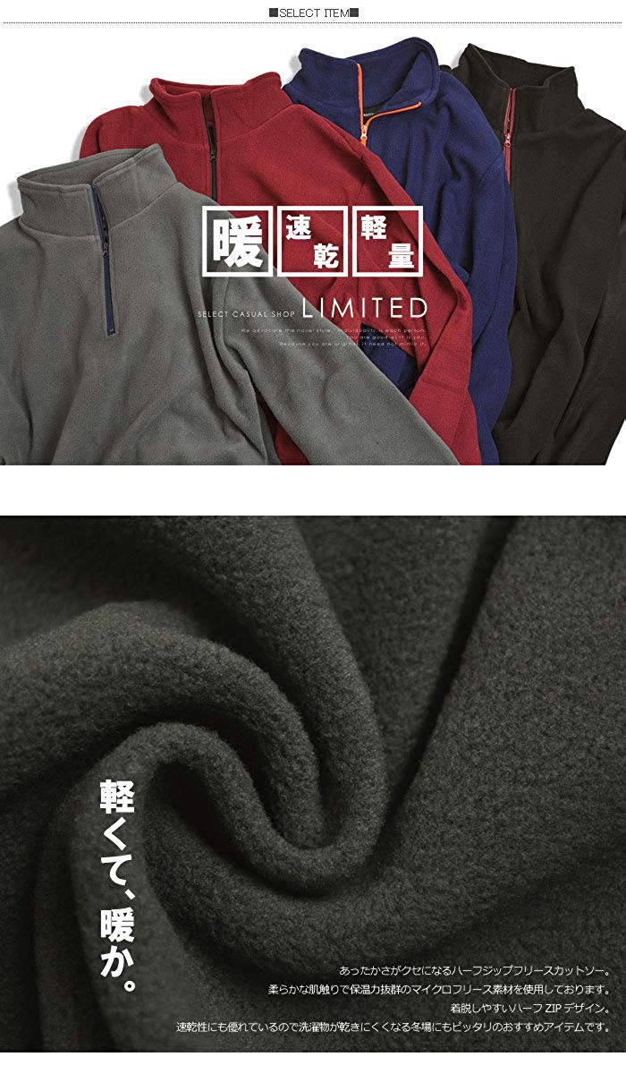 着脱しやすいハーフジップデザイン。襟裏のカラー切替がポイントになっていて、おしゃれ度アップ!!洗濯してもすぐ乾燥するところが嬉しいポイント!!